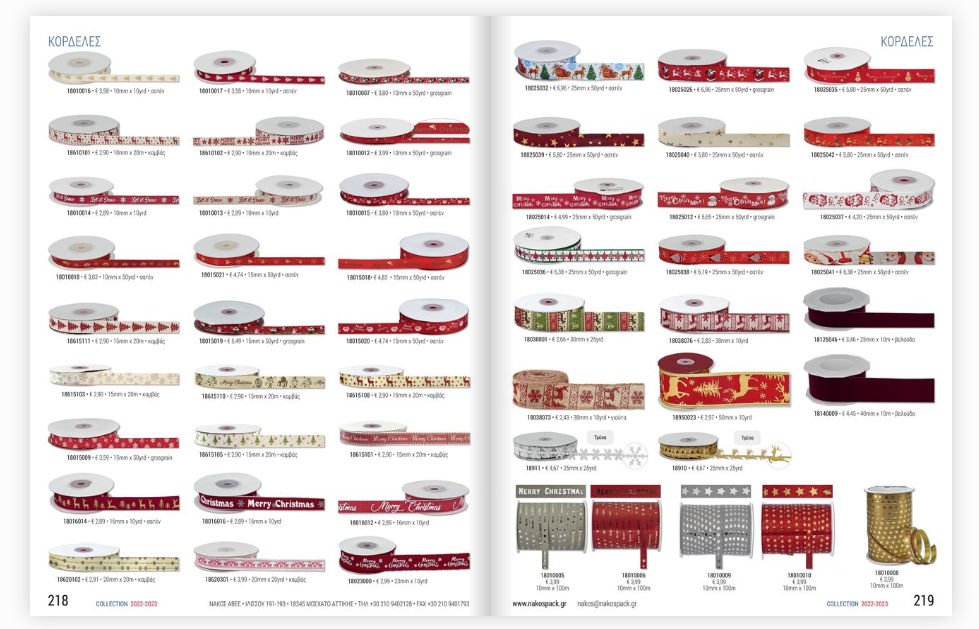 Όλες τις κορδέλες που διαθέτουμε, μπορείτε να τις βρείτε στον μεγάλο ετήσιο κατάλογο μας, στις σελίδες 198-221.